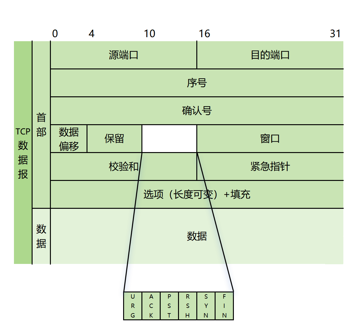 ④紧急位URG=1时,表明报文段有紧急数据,有高优先级,不用排队