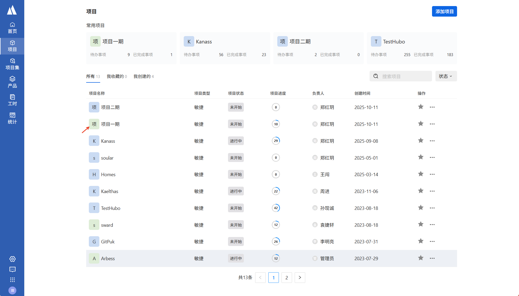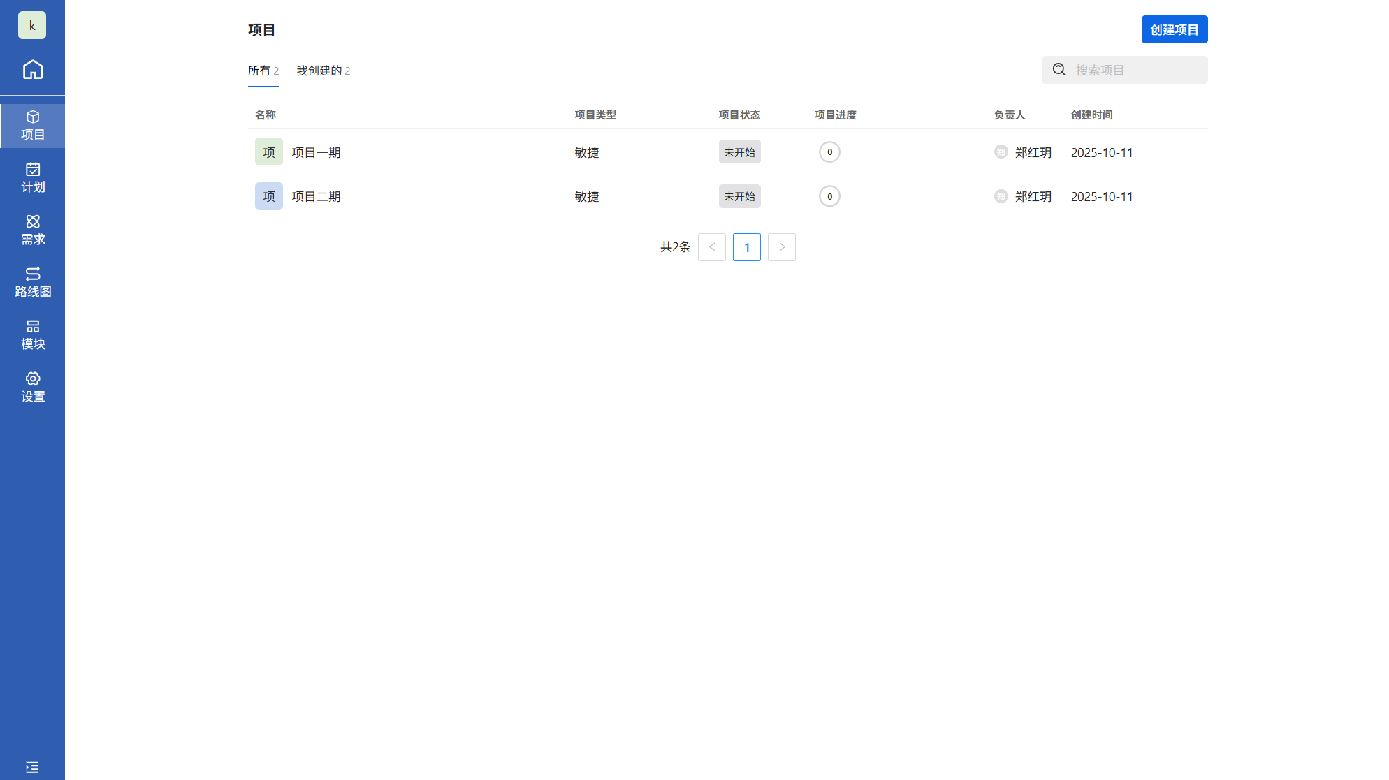 在产品中创建的项目,也同时会显示在系统级别的项目模块中
