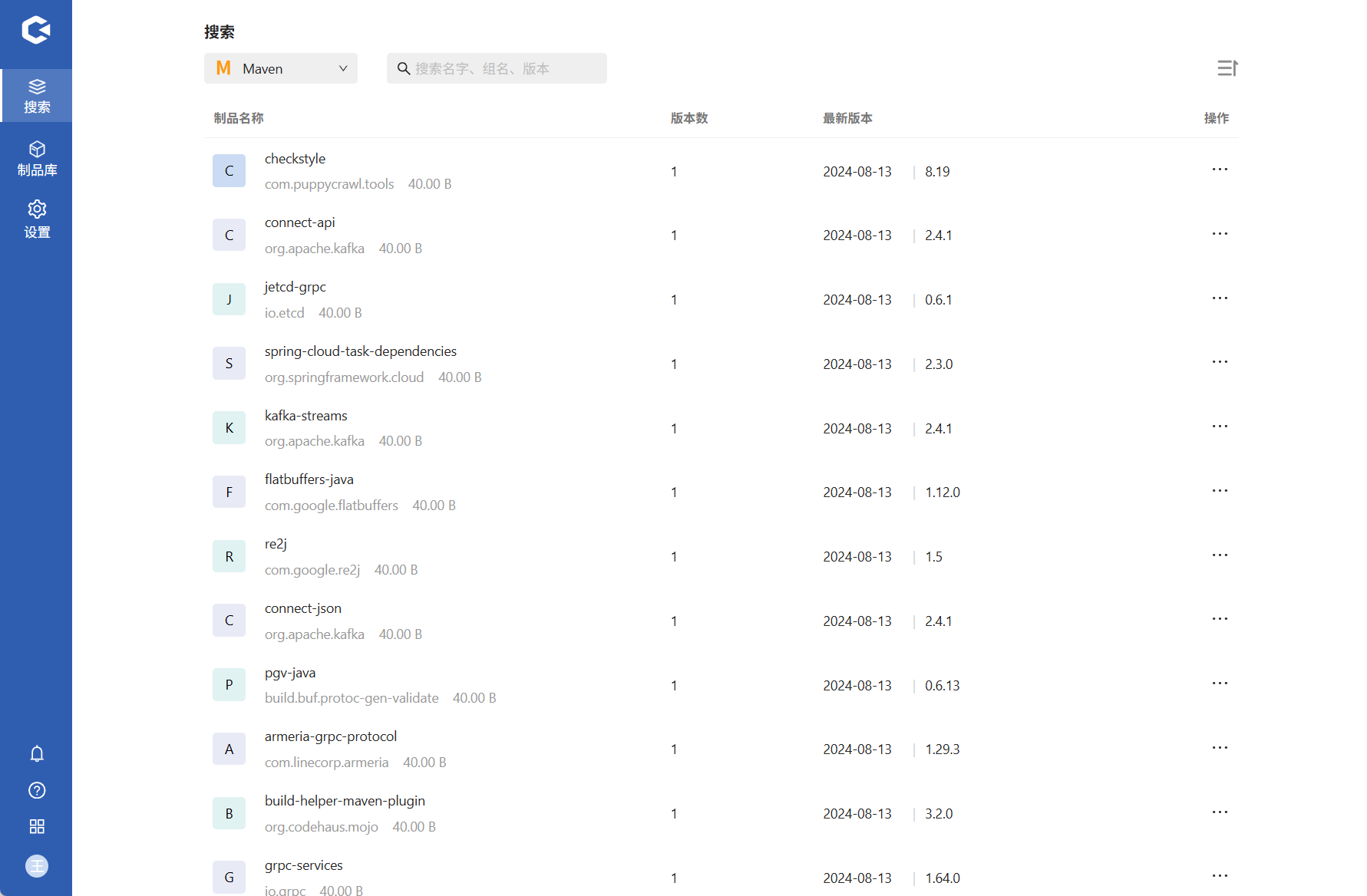 2.进入我们刚刚新创建的制品库,点击左侧设置按钮进入设置页面