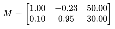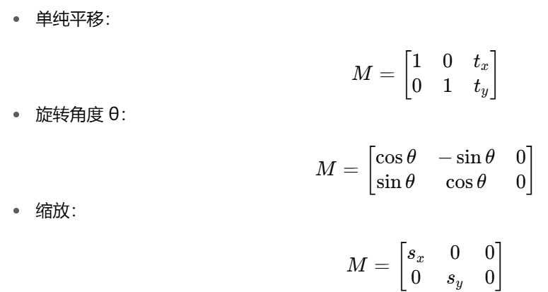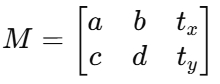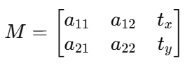 在 OpenCV 中,仿射矩阵通常写成如下形式(2×3矩阵):