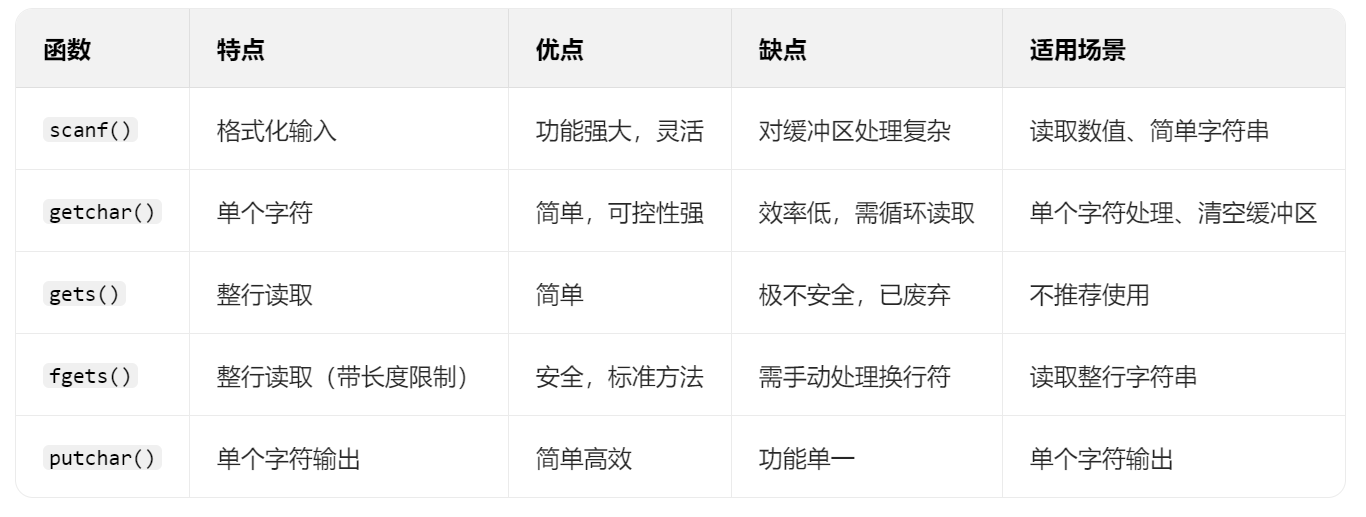 ,它是危险的。 - 处理好换行符:混合输入时,记得清空缓冲区。