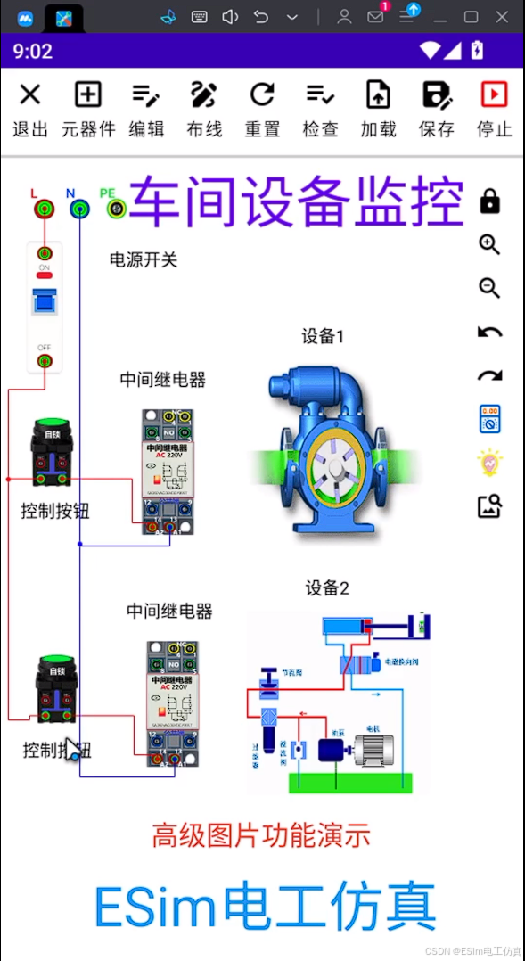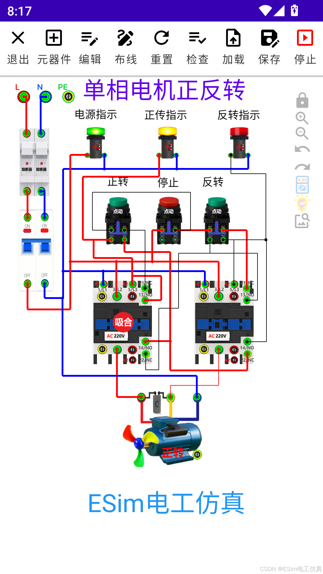 ESim电工仿真具有示教功能,用户学习时可以形象的看到电路组态和工作的过程,同时也可也制作电气动画,方便我们制作电工动画课件!