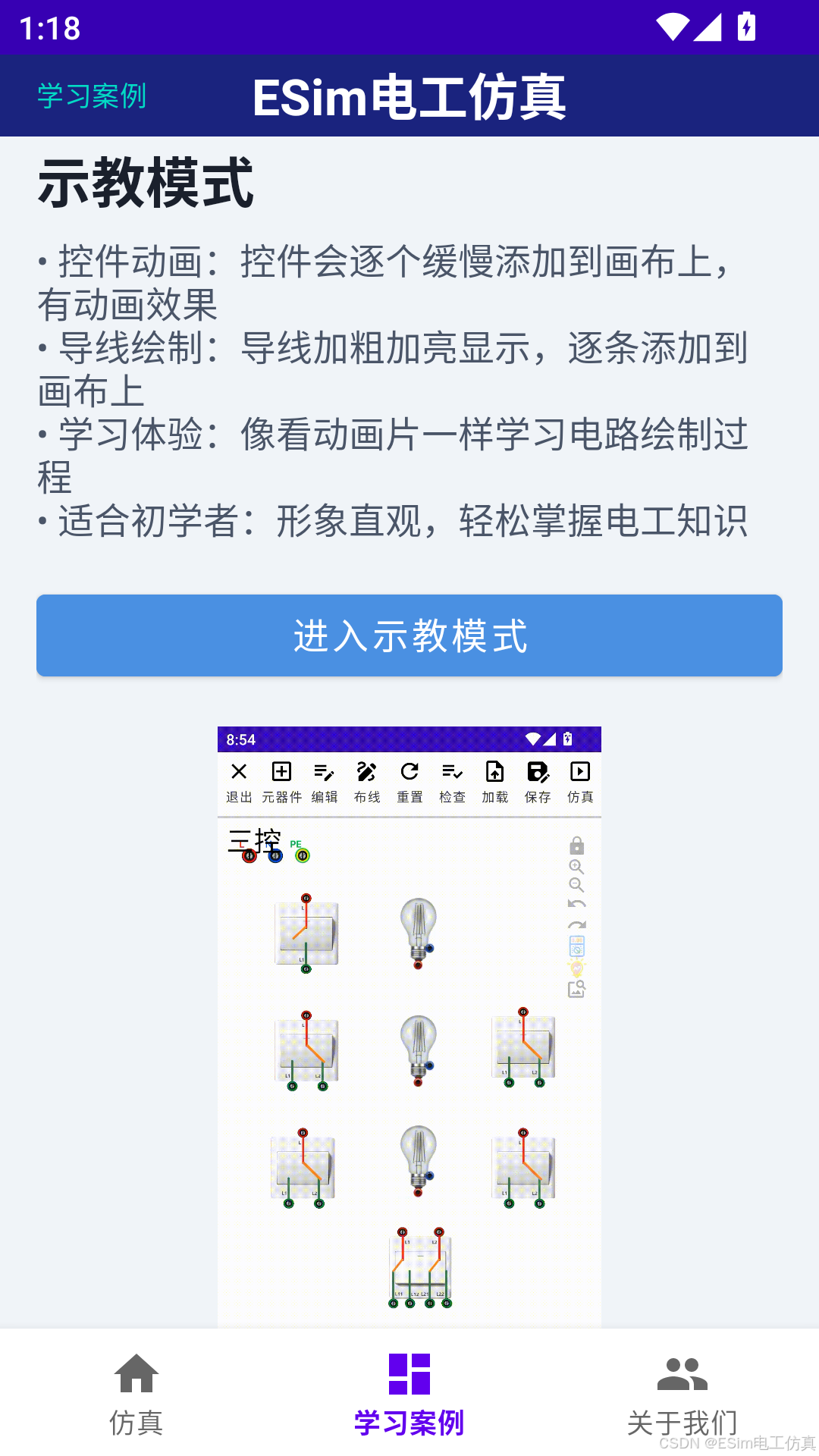 ESim电工仿真是一款专为安卓设备设计的专业级电路仿真与学习工具,致力于为电工、电气自动化技术人员、职业院校学生及电子爱好者提供一个直观、高效、安全的虚拟实验平台。
