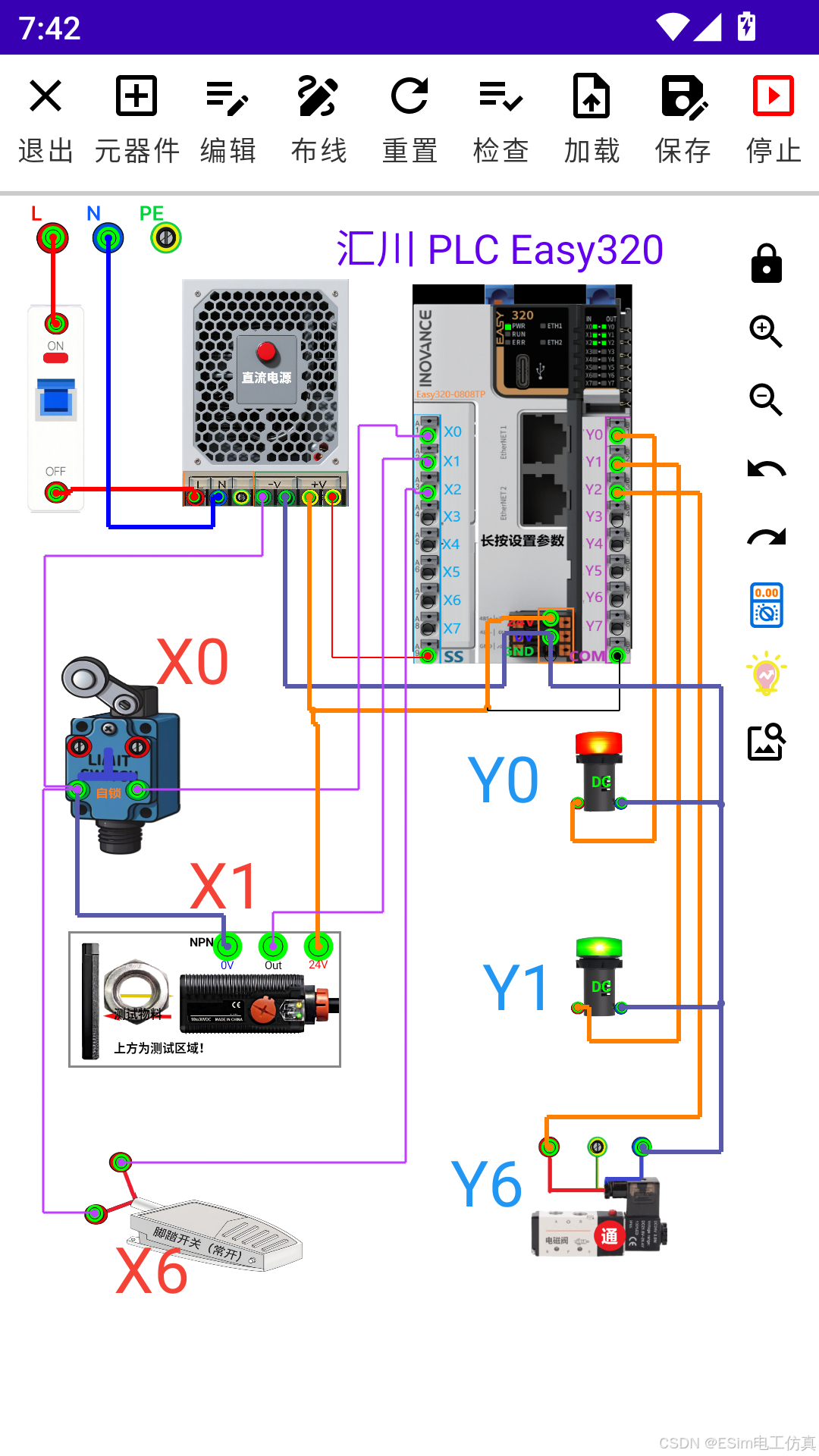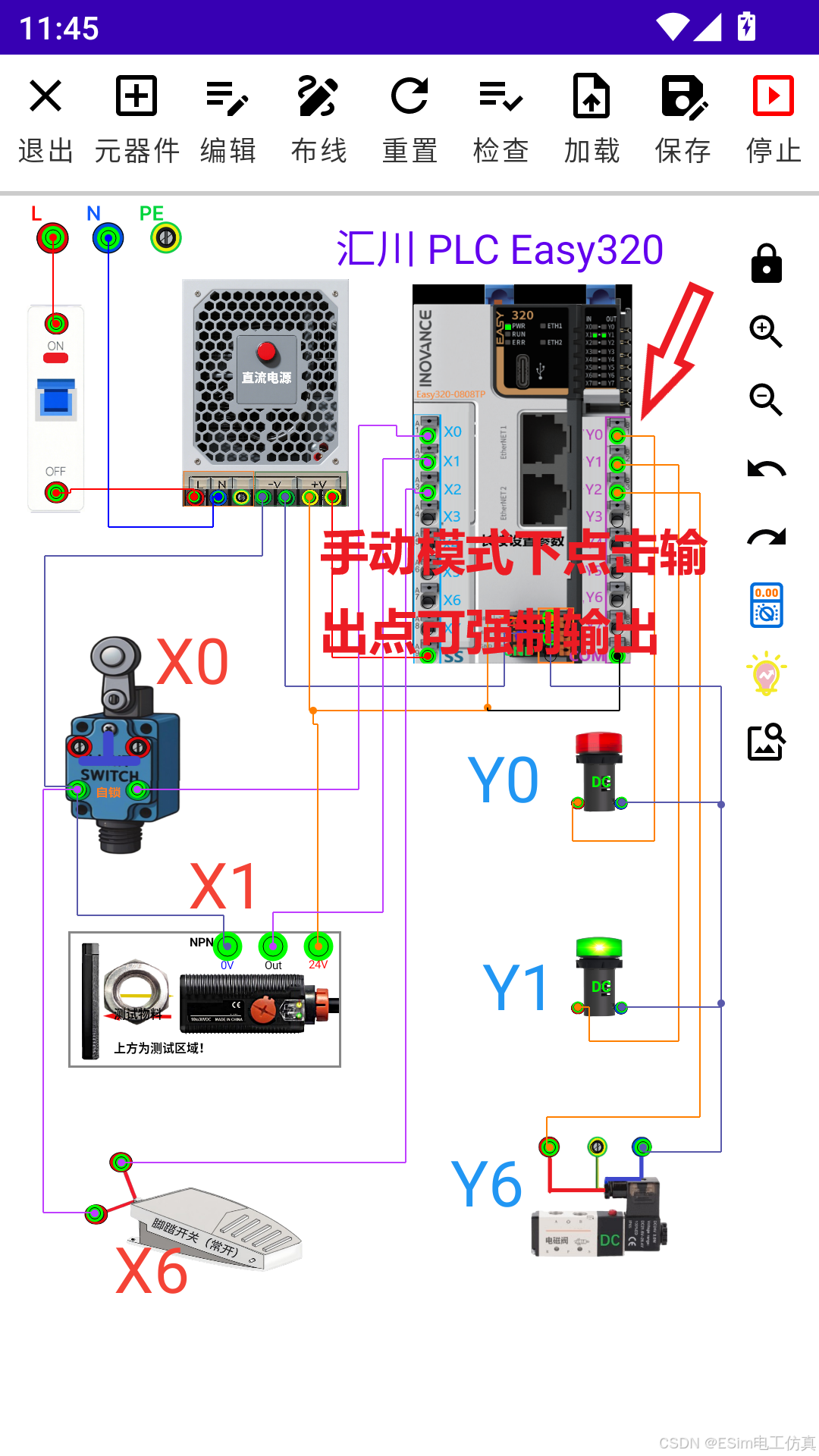 本软件内置超过100种高精度元器件模型,涵盖按钮、继电器、接触器、断路器、传感器(支持PNP/NPN切换)、安全继电器、万用表等常用元件,并特别引入了对国产主流工控设备的仿真支持,如汇川PLC(Easy320)和汇川变频器(MD200),力求贴近国内工业实际应用场景,助力用户熟悉国产设备操作,服务本土技术人才培养。