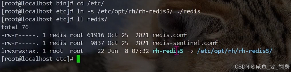 ln -s /etc/opt/rh/rh-redis5/ ./redis