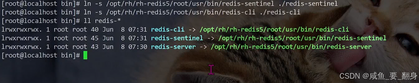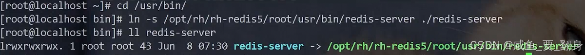 ln -s /opt/rh/rh-redis5/root/usr/bin/redis-sentinel ./redis-sentinel | Redis哨兵程序(后面会讲解,先了解) | /usr/bin/redis-sentinel | 运行Redis哨兵(高可用) |