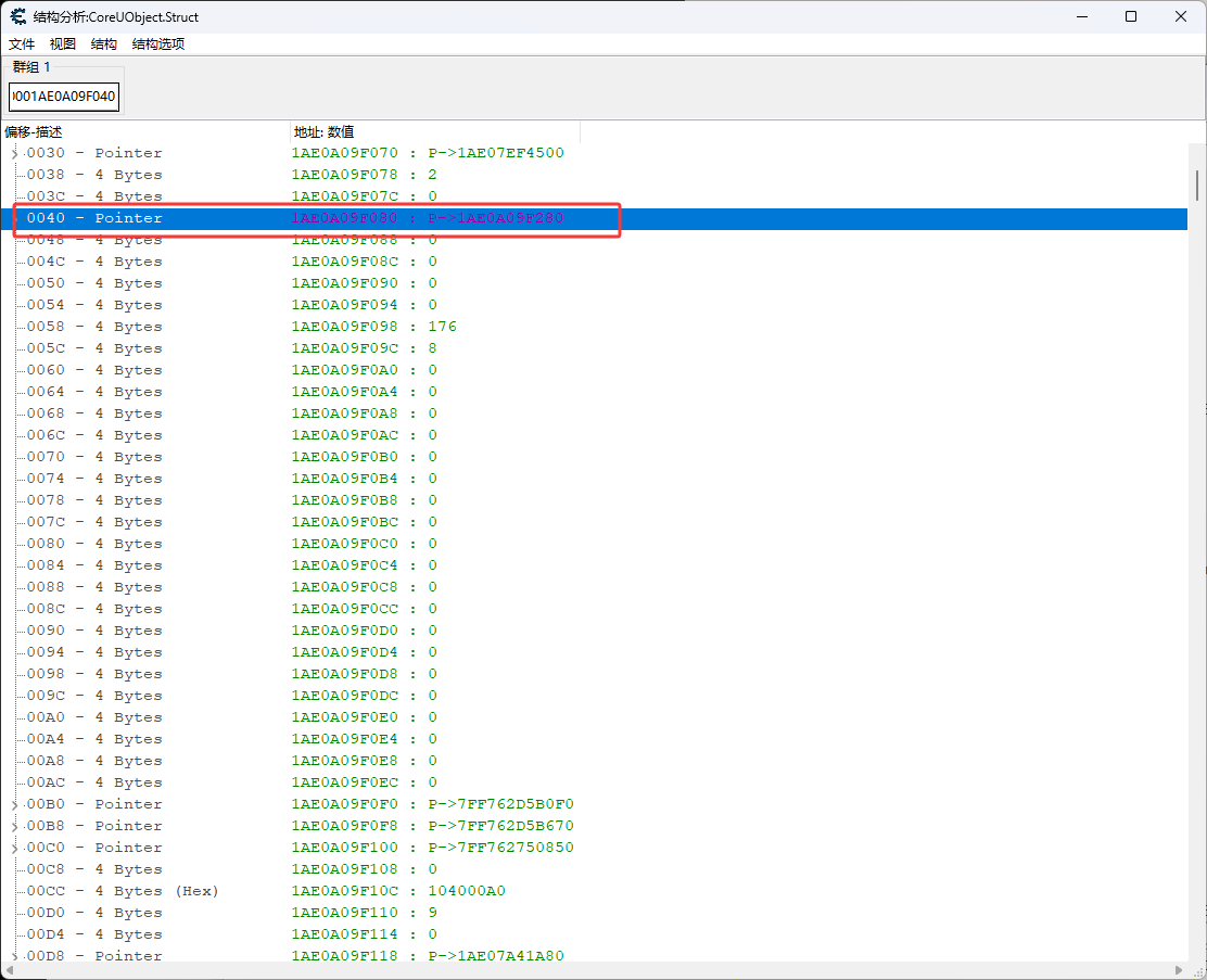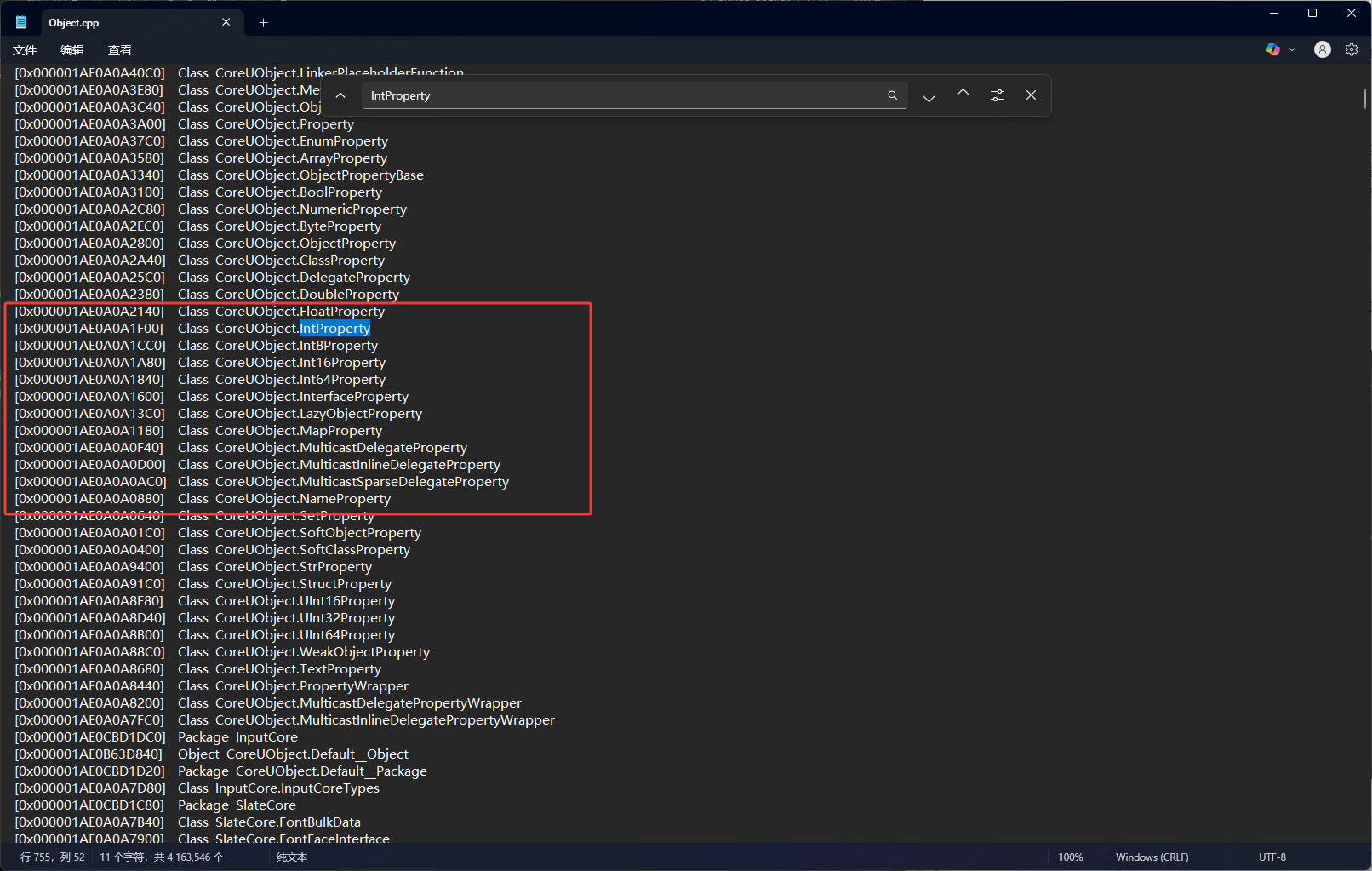 然后是FProperty的大小,FProperty指的就是 CoreUObject.Property,想知道FProperty的大小需要进入CoreUObject.Property的内存,如下图红框它的内存地址