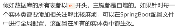 mybatis-plus:global-config:db-config:id-type: AUTO # 主键策略:自增(需数据库表支持自增)table-prefix: tb_ # 表名前缀:实体类自动匹配 tb_xxx 表table-underline: true # 驼峰转下划线:userName → user_name
