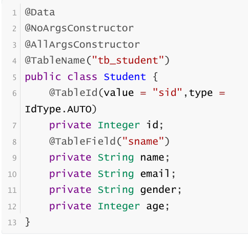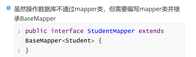 public interface StudentMapper extends BaseMapper<Student> {// 无需手写 CRUD 方法,继承后直接可用