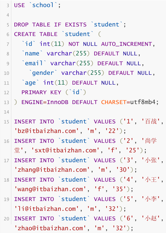 void testInsert() {Student student = new Student();student.setName("张三");student.setEmail("zhangsan@example.com");student.setGender("男");student.setAge(20);int result = studentMapper.insert(student);System.out.println("插入结果:" + result); // 1 表示成功System.out.println("插入后主键:" + student.getId()); // MP 会自动回填主键