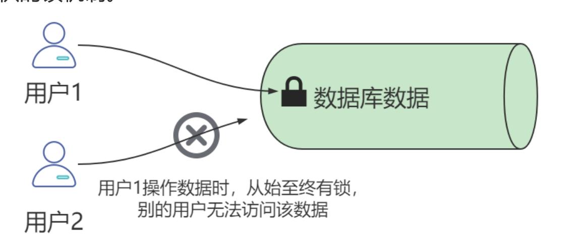 - 悲观锁:悲观锁对数据被外界修改持保守态度。即在整个数据处 理过程中,将数据处于锁定状态。悲观锁的实现往往依靠数据库 提供的锁机制。