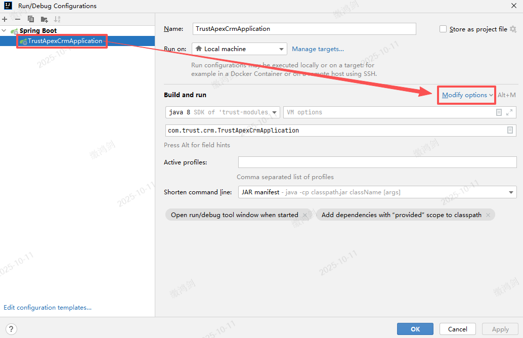 解决idea报错:Error running TrustApexCrmApplication. Command line is too long