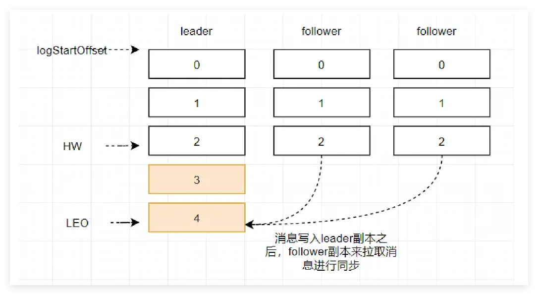 acks=1,等待分区的leader落盘成功后返回ACK - broker采用多副本机制,消费者什么时候能读取消息?LEO和HW
