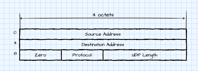用于计算校验和和UDP数据报的伪报头的结构如下所示。