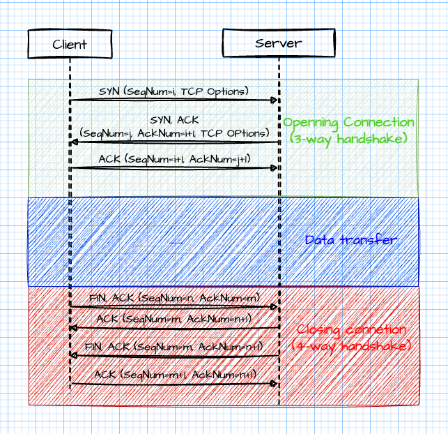 RFC 9293 提供了 TCP 连接的详细描述和状态图。我不会在这里复制它。如果您愿意,可以阅读它。但是,我想指出的是,它读起来比较困难。下面是 TCP 连接生命周期的序列图。