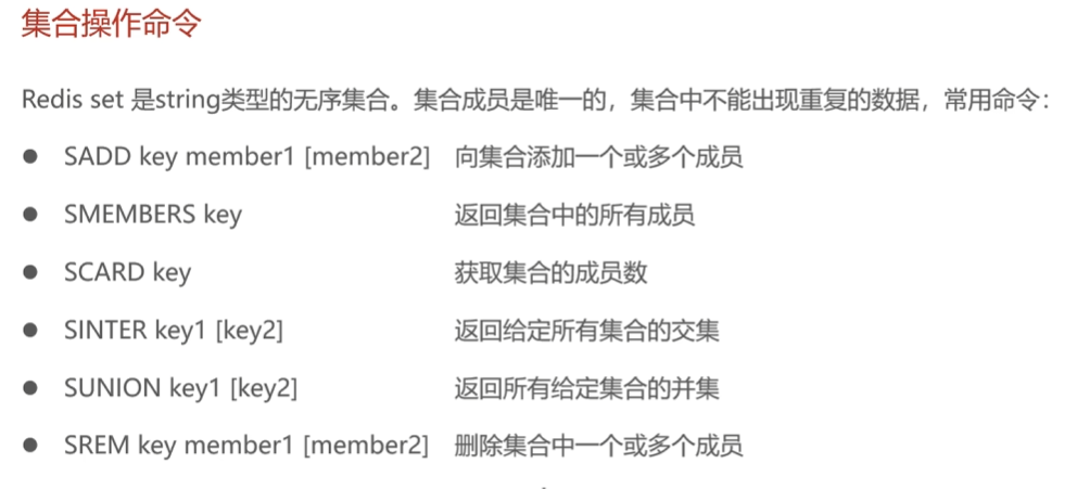 public class SpringDataRedisTest {@Autowiredprivate RedisTemplate redisTemplate;@Testpublic void testRedis(){ValueOperations valueOperations = redisTemplate.opsForValue();HashOperations hashOperations = redisTemplate.opsForHash();ListOperations listOperations = redisTemplate.opsForList();SetOperations setOperations = redisTemplate.opsForSet();ZSetOperations zSetOperations = redisTemplate.opsForZSet();}/*** 操作字符串类型*/@Testpublic void testString(){redisTemplate.opsForValue().set("city","北京");Object city = redisTemplate.opsForValue().get("city");System.out.println(city);redisTemplate.opsForValue().set("code","1234",3, TimeUnit.MINUTES);redisTemplate.opsForValue().setIfAbsent("lock","1");redisTemplate.opsForValue().setIfAbsent("lock","2");}/*** 操作hash类型*/@Testpublic void testHash(){HashOperations hashOperations = redisTemplate.opsForHash();hashOperations.put("100","name","tom");hashOperations.put("100","age","20");String name = (String) hashOperations.get("100","name");System.out.println(name);Set keys = hashOperations.keys("100");System.out.println(keys);List values = hashOperations.values("100");System.out.println(values);hashOperations.delete("100","age");}/*** 操作list类型*/@Testpublic void testList(){ListOperations listOperations = redisTemplate.opsForList();listOperations.leftPushAll("mylist","a","b","c");listOperations.leftPush("mylist","d");List mylist = listOperations.range("mylist",0,-1);System.out.println(mylist);listOperations.rightPop("mylist");Long size = listOperations.size("mylist");System.out.println(size);}/*** 操作set类型*///sadd smembers scard sinter sunion srem@Testpublic void testSet(){SetOperations setOperations = redisTemplate.opsForSet();setOperations.add("mySet1","a","b","c");setOperations.add("mySet2","a","b","d");Set members = setOperations.members("myset1");System.out.println(members);Long size = setOperations.size("mySet1");System.out.println(size);Set intersect = setOperations.intersect("mySet1","mySet2");System.out.println(intersect);Set union = setOperations.union("mySet1","mySet2");System.out.println(union);setOperations.remove("mySet1","a","b");}/*** 操作zset类型*/@Testpublic void testZSet(){ZSetOperations zSetOperations = redisTemplate.opsForZSet();zSetOperations.add("myzset", "tom", 10);zSetOperations.add("myzset", "jerry", 20);zSetOperations.add("myzset", "lucy", 30);Set zset1 = zSetOperations.range("myzset",0,-1);System.out.println(zset1);}/*** 通用命令*/@Testpublic void testCommon(){//keys exists type delSet keys = redisTemplate.keys("*");System.out.println(keys);Boolean name = redisTemplate.hasKey("*");Boolean set1 = redisTemplate.hasKey("set1");for (Object key : keys){DataType type = redisTemplate.type(key);System.out.println(type.name());}}
