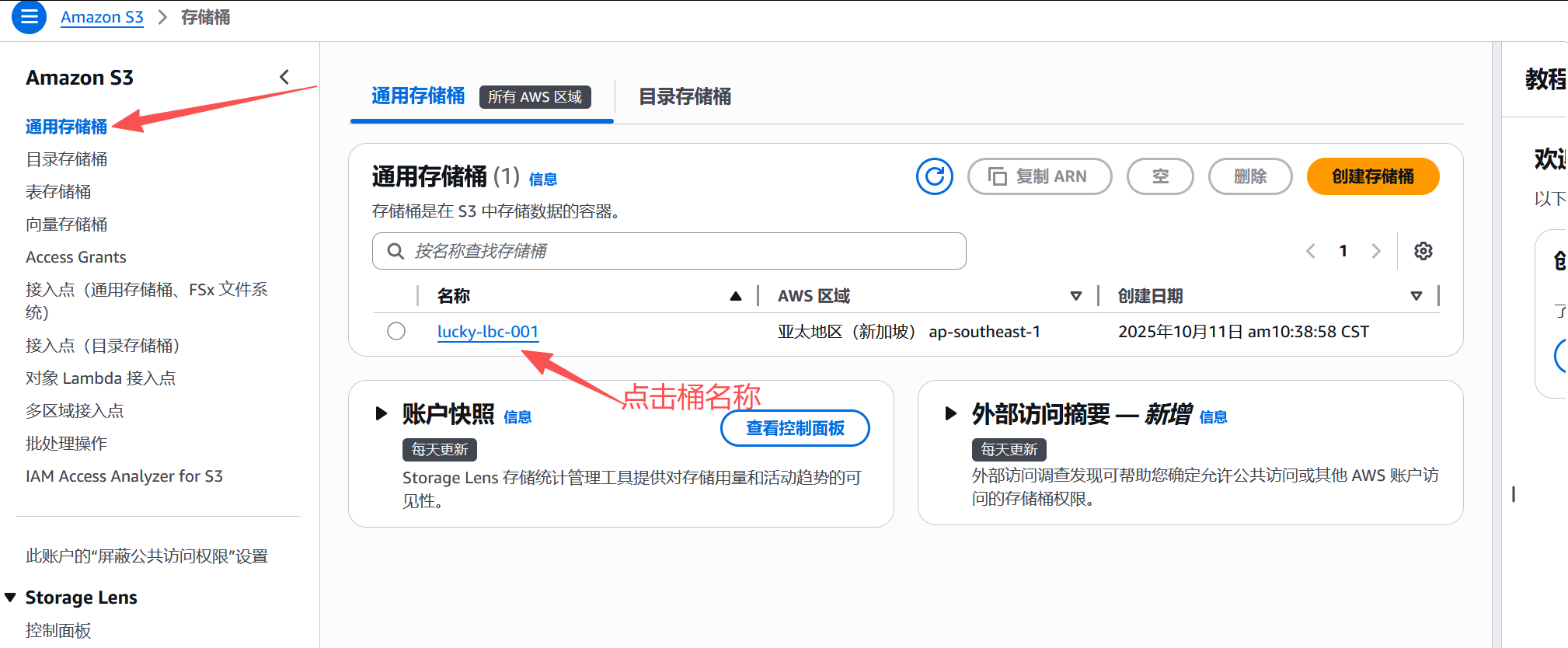 1. 创建桶,然后点击桶名称