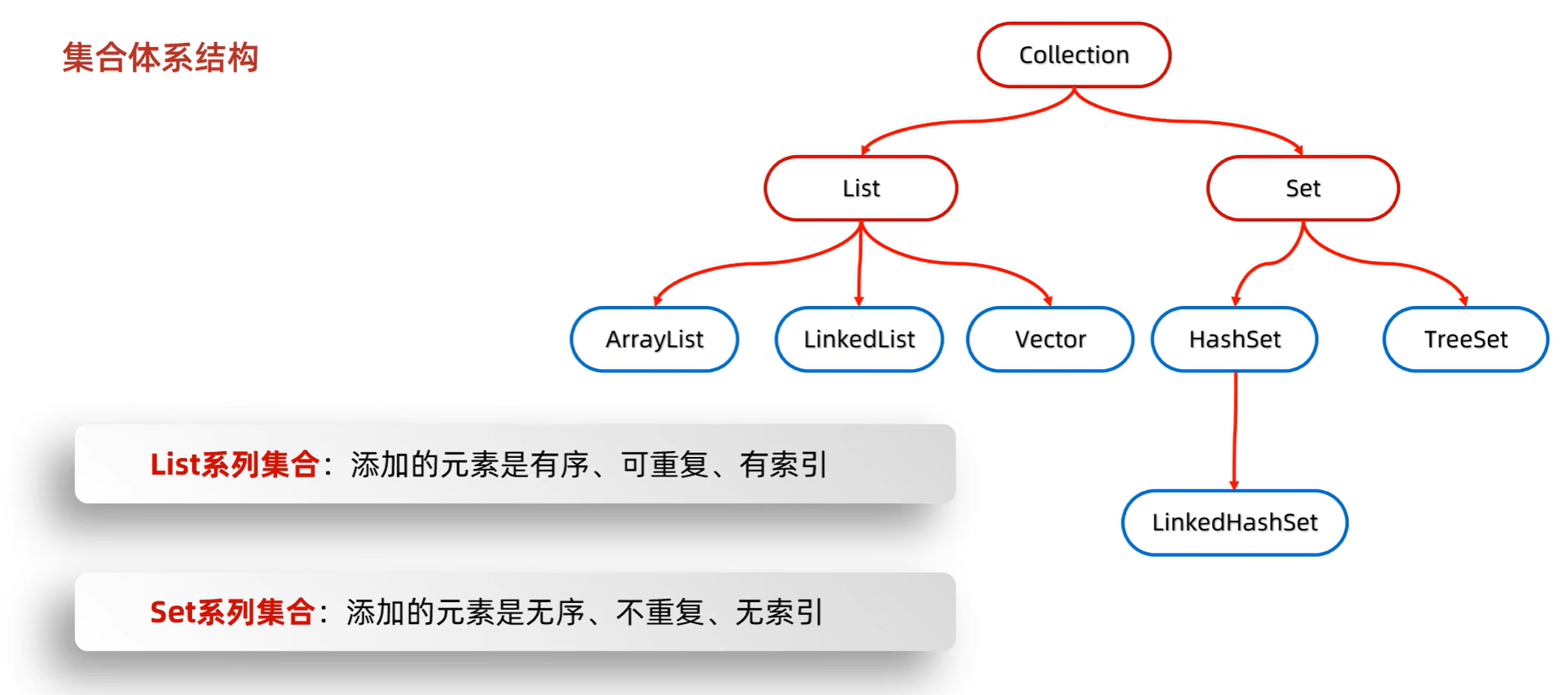 Collection 是根;List 和 Set 是两大家族;每个家族下面再分“谁有序、谁重复、谁带索引”。