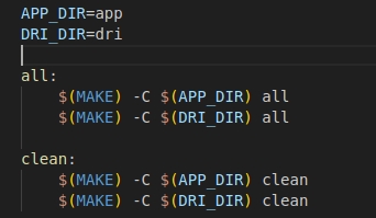 顶层执行Make时会分别进入app和dri中执行Makefile