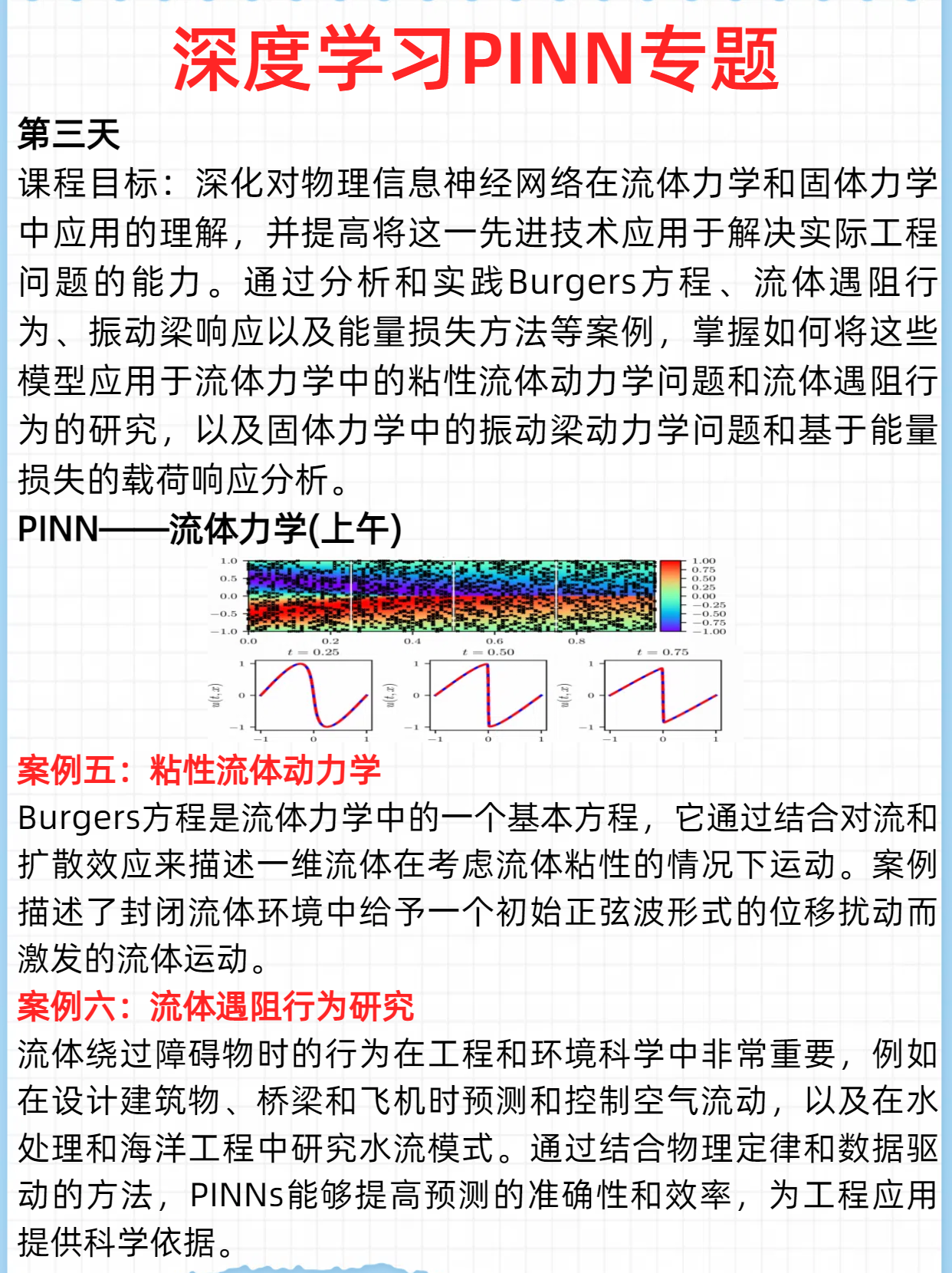 在逐步引导学员掌握神经网络和物理信息神经网络(PINN)的理论知识和实践技能。从基础的神经网络架构开始,课程内容逐步深入到PINN在不同领域的应用,并教授学员如何使用DeepXDE工具包来简化PINN模型的开发和训练。学员将学习搭建深度学习环境,设计多层感知机等深度神经网络,并应用于解决实际问题。课程重点探讨PINN如何结合物理定律和数据驱动学习,解决正问题和逆问题,以及在流体力学、固体力学等领域的应用。此外,学员还将学习PINN在处理耦合系统和复杂系统中的应用,如热流耦合和电池系统预测。最后,课程将提升学员对PINN优化技巧的理解,并介绍DeepXDE工具包的使用,以解决物理和化学领域的实际问题。
