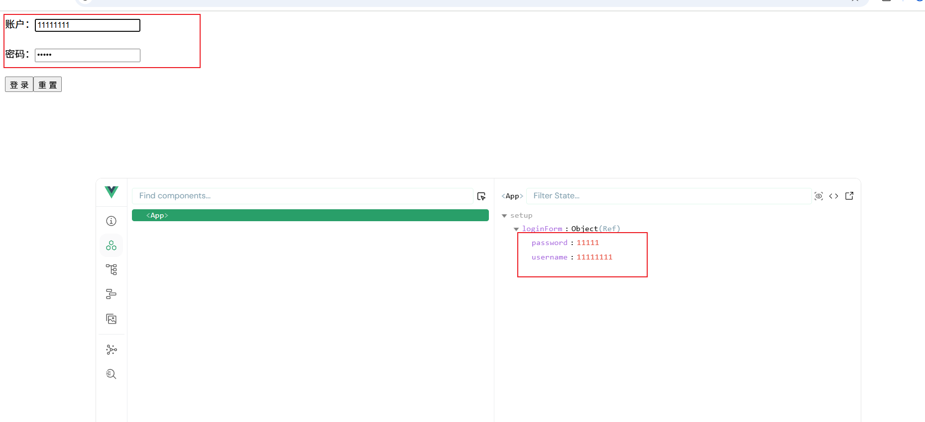 </script><template><div class="login-box">账户:<input type="text" v-model="loginForm.username" /><br /><br />密码:<input type="password" v-model="loginForm.password" /><br /><br /><button>登 录</button><button>重 置</button></div>