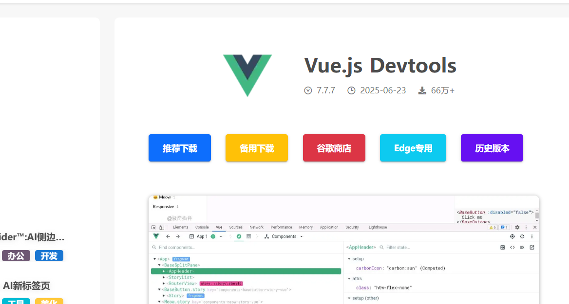 安装工具当然是安装到浏览器上了,这里建议使用谷歌浏览器,当然我们要科学上网,直接通过极简插件下载,网址为:https://chrome.zzzmh.cn/index 直接搜Vue,下载这个
