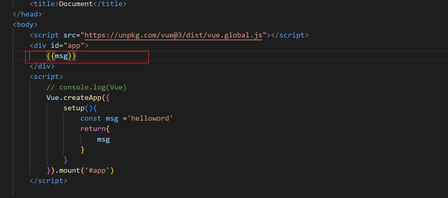 还有就是这个mount这个方法,作用就是我想将这个msg渲染到哪里,里面参数写了#app,这里就会渲染到app这个容器中.