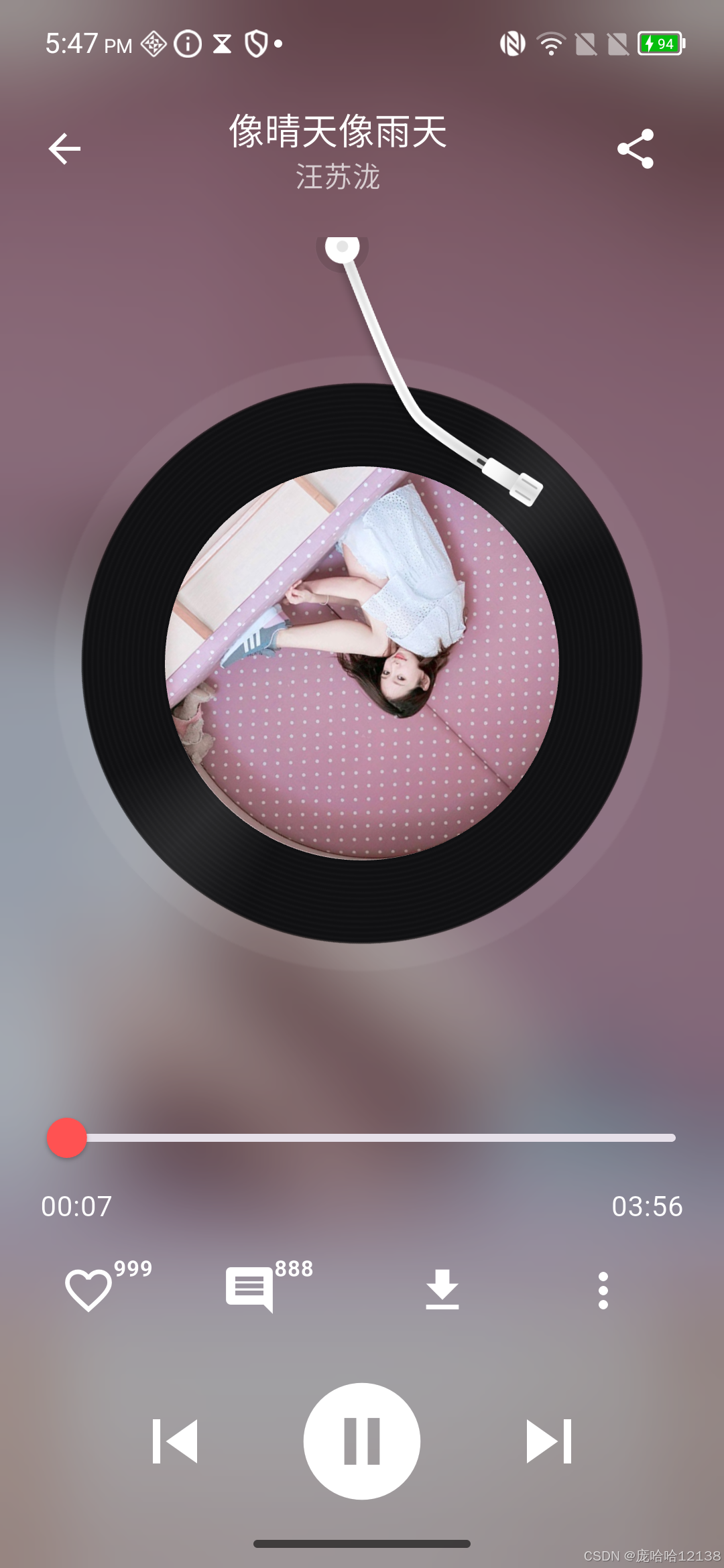 - 底部:进度条+播放时间,点赞/评论/下载等小按钮,以及控制播放的三个大按钮。