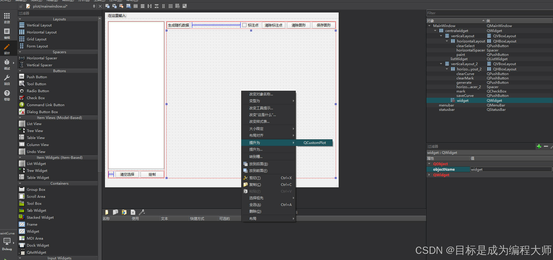 }void MainWindow::on_clearCurve_clicked() {on_clearMark_clicked();ui->widget->clearGraphs();ui->widget->rescaleAxes(); // 自动调整坐标轴到数据范围ui->widget->replot();