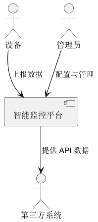 actor "第三方系统" as ThirdParty[智能监控平台] as PlatformDevice --> Platform : 上报数据