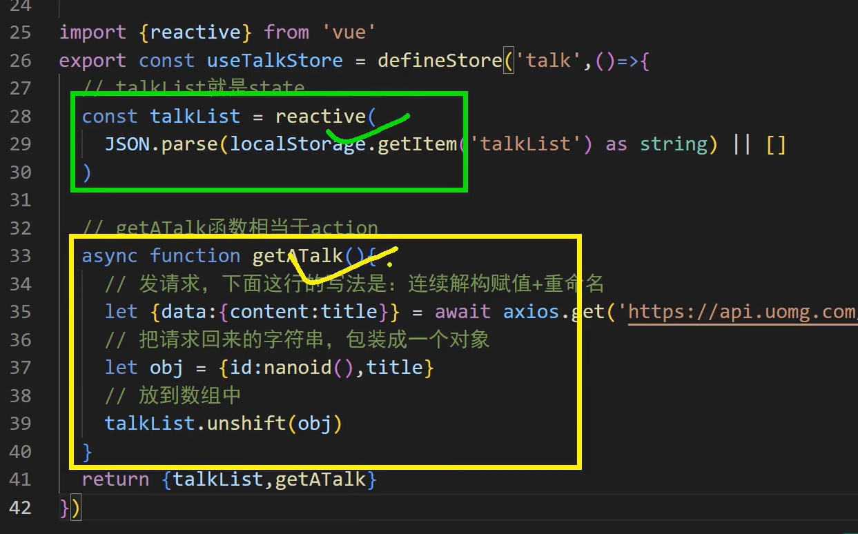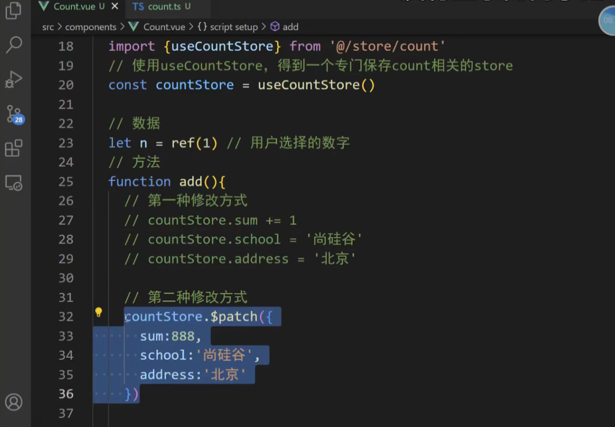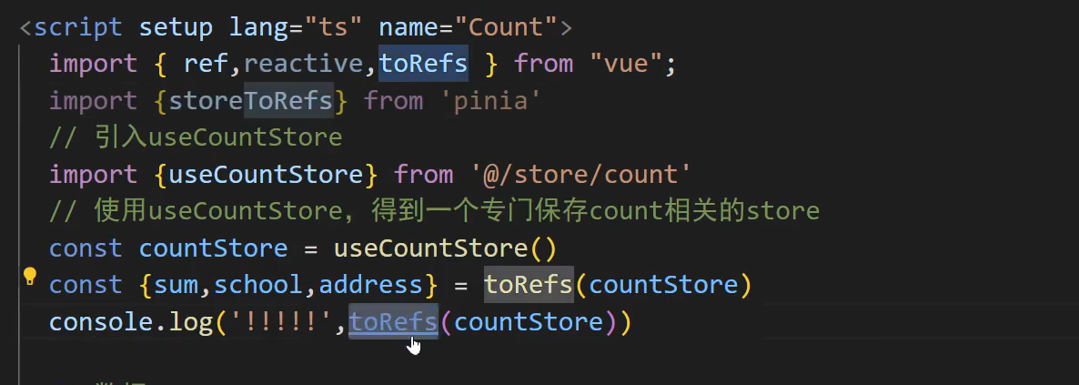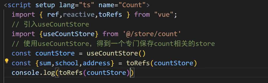 const { count, doubleCount } = storeToRefs(counterStore)// 注意:actions 不需要也不应该通过 storeToRefs 解构,直接通过原 store 调用即可