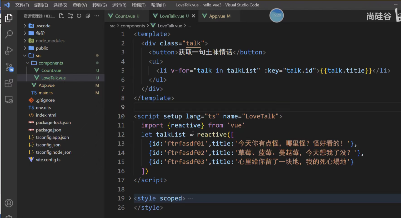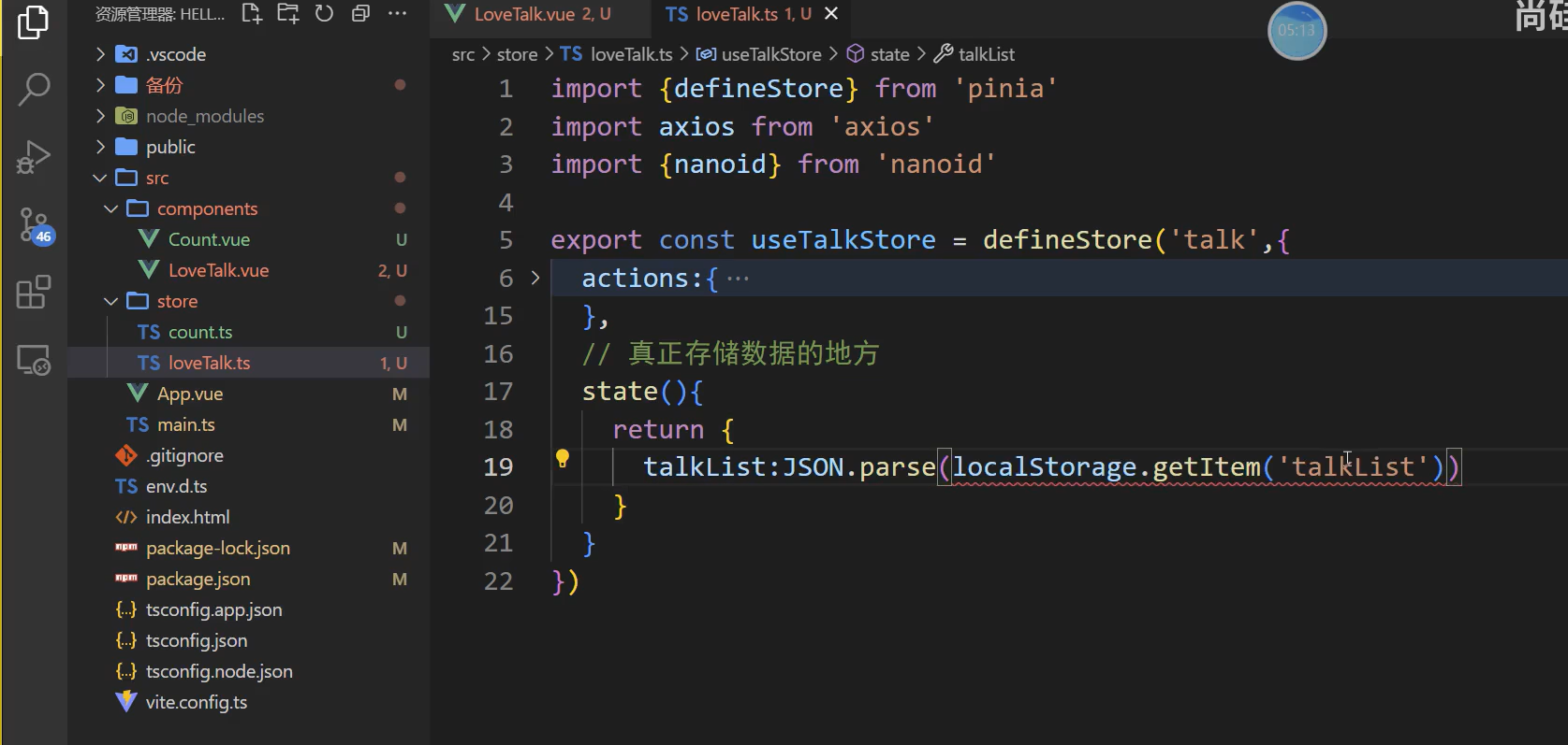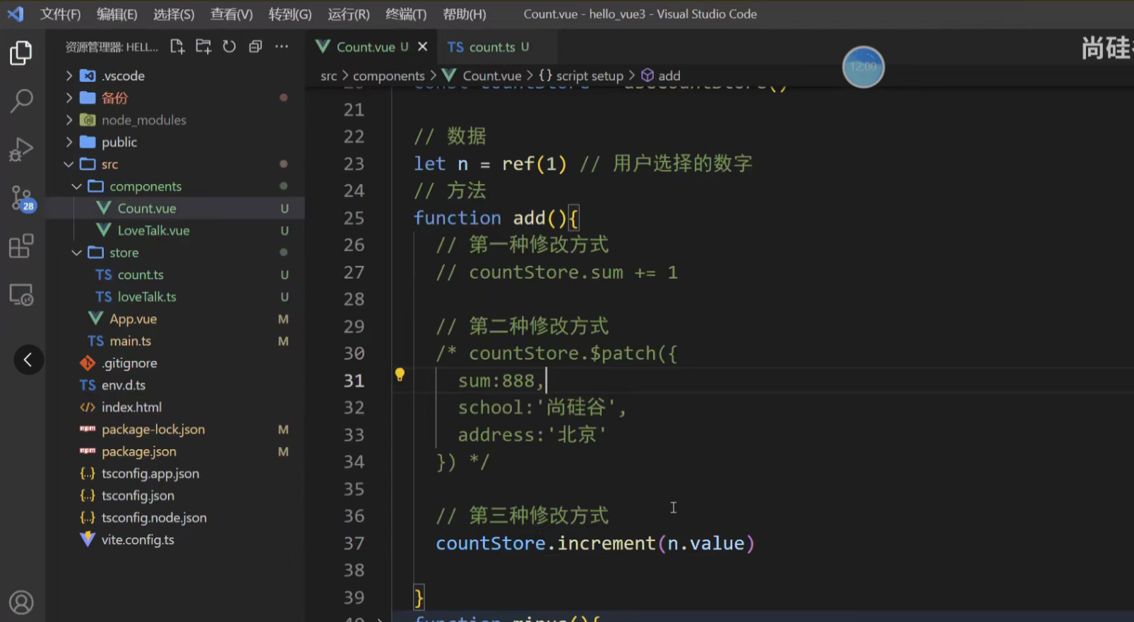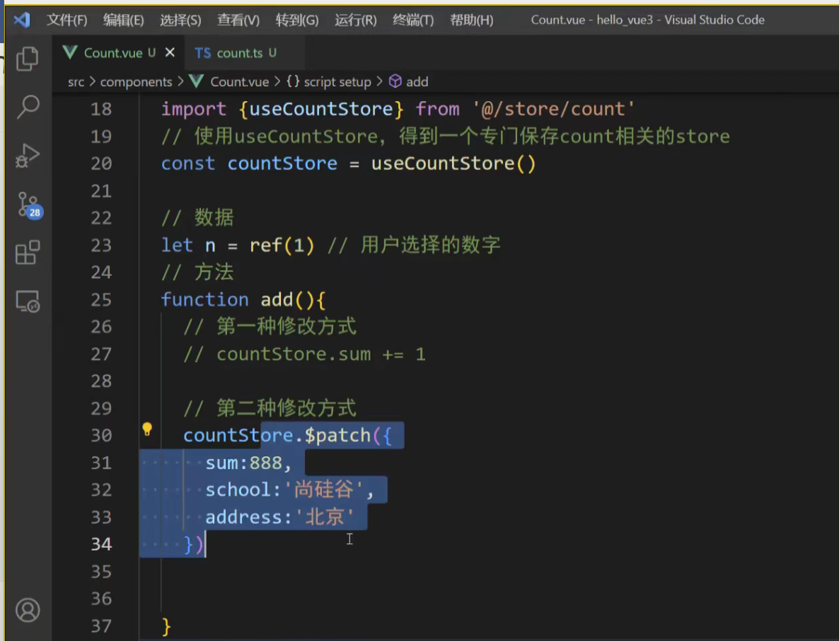 import { useCounterStore } from '@/stores/counter'// 在 setup 中调用 use...Store 函数实例化 store