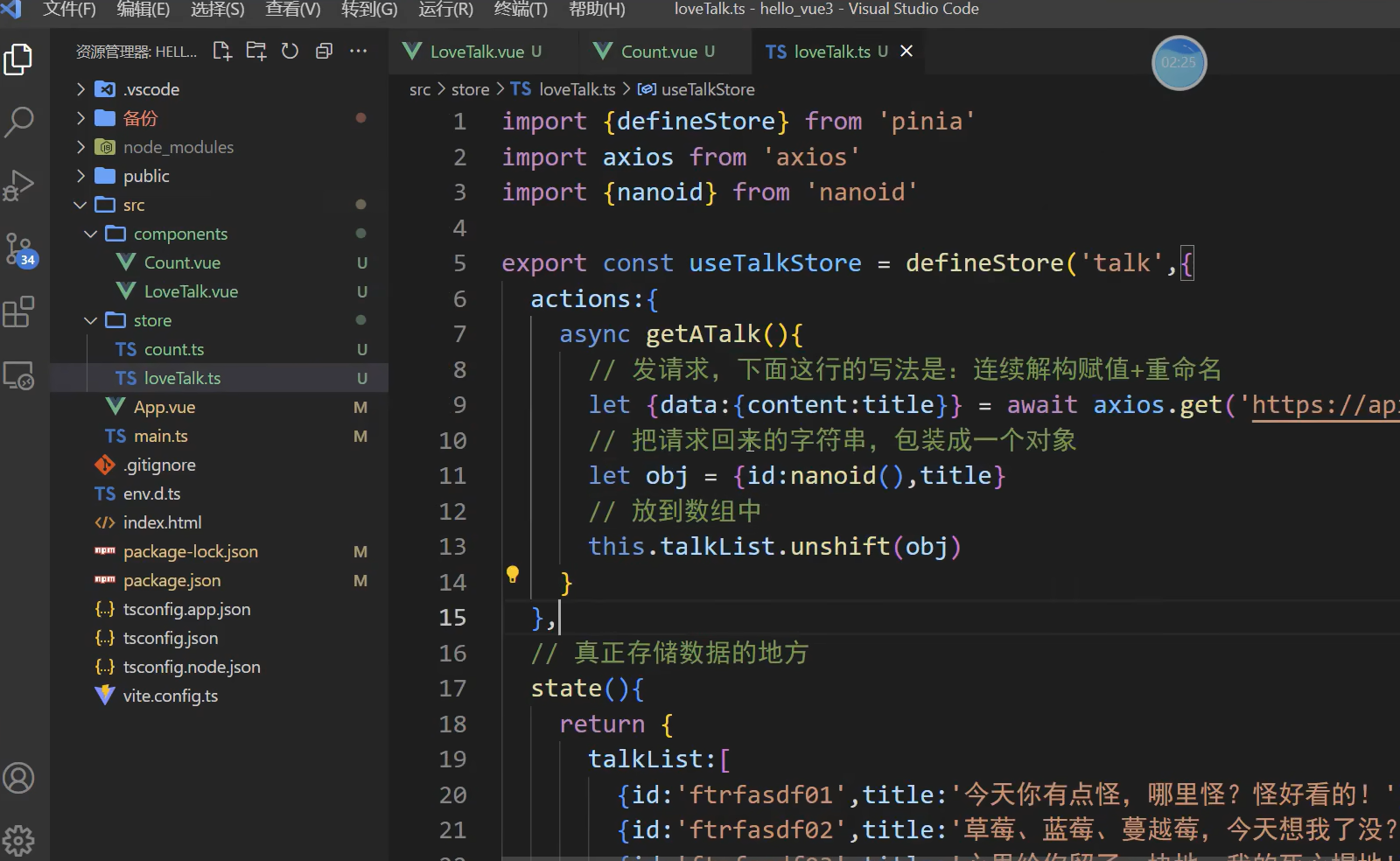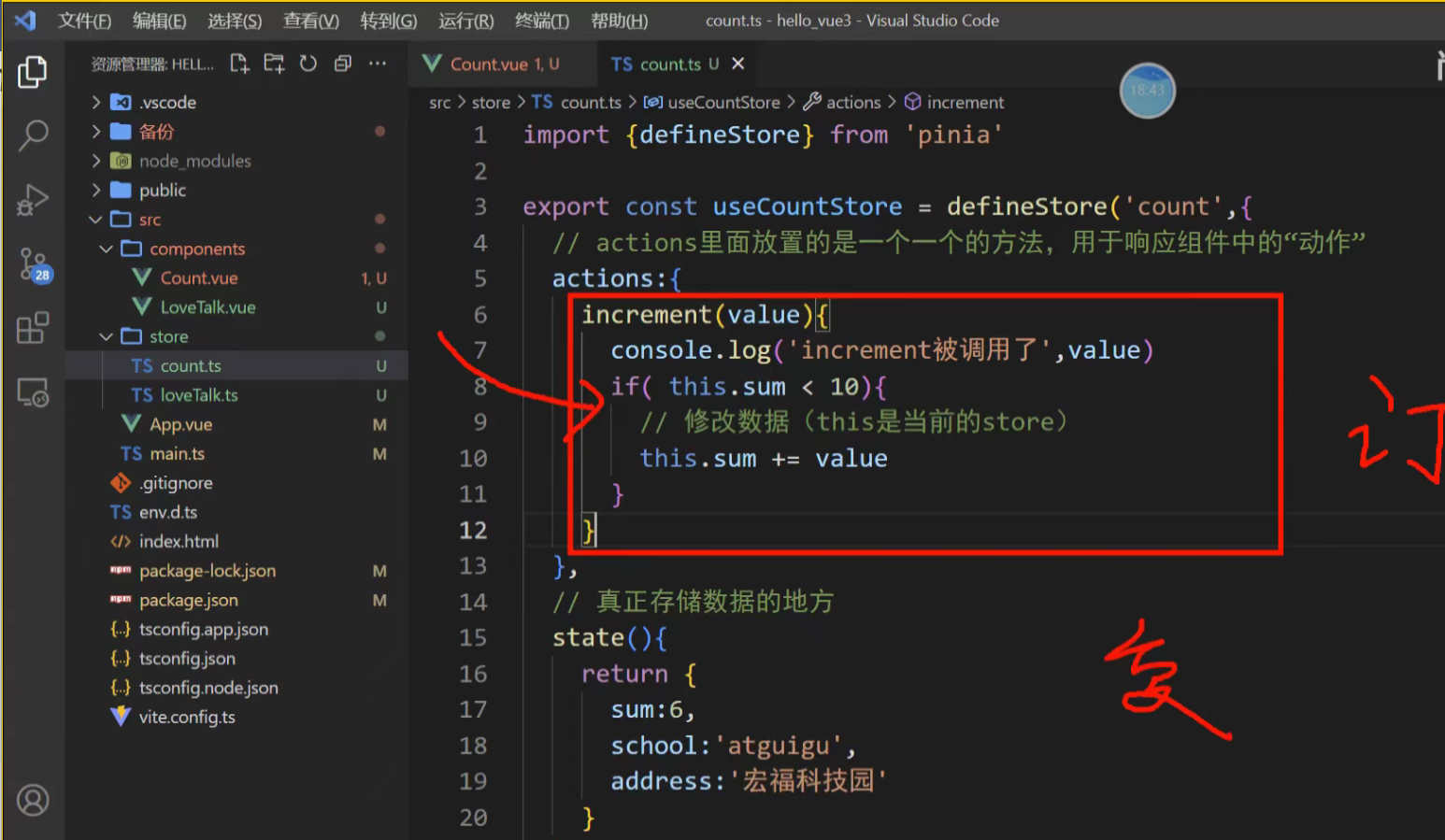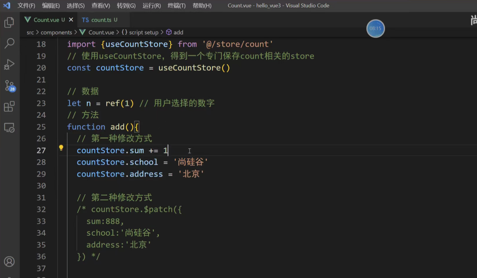 函数的语法来定义 Store,这与 Vue 3 的 Composition API 思想一致。