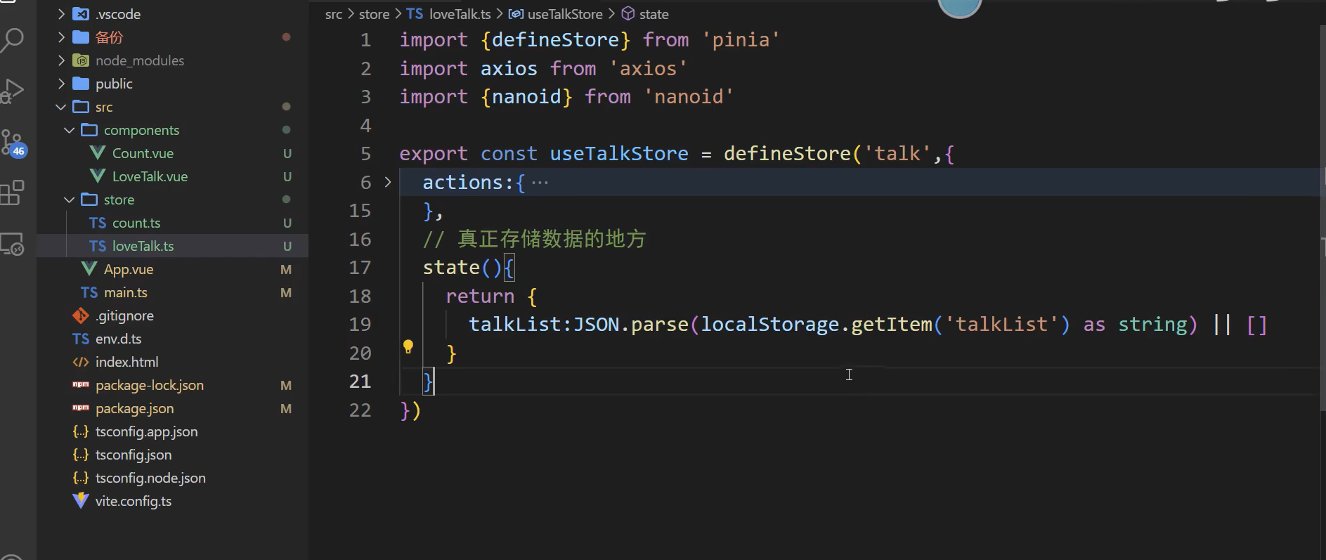 import { useCounterStore } from '@/stores/counter-composition'const counterStore = useCounterStore()