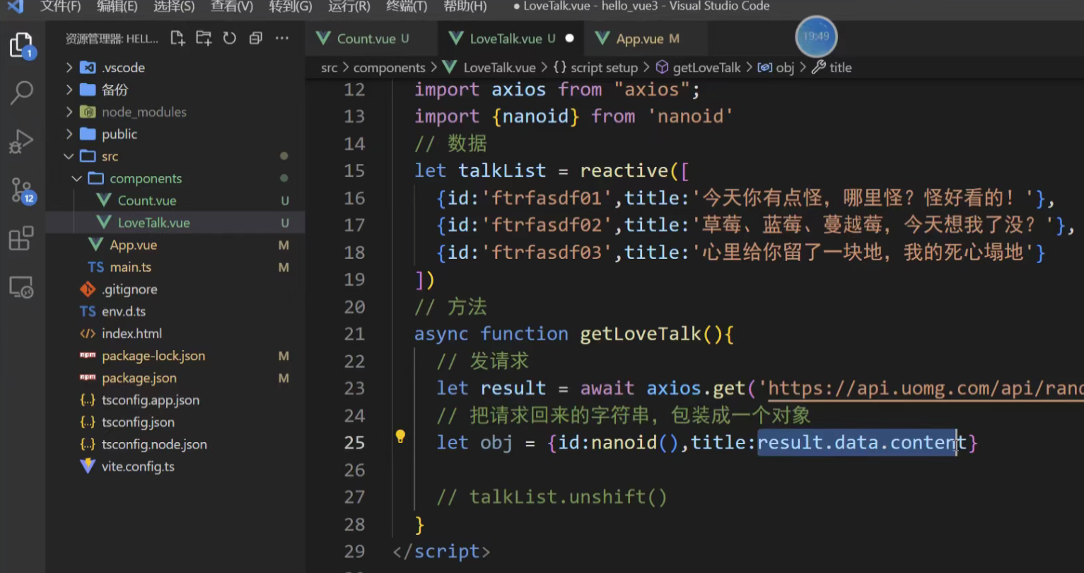 每个组件里面定义了不同的返回数据,现在把他们抽取出来