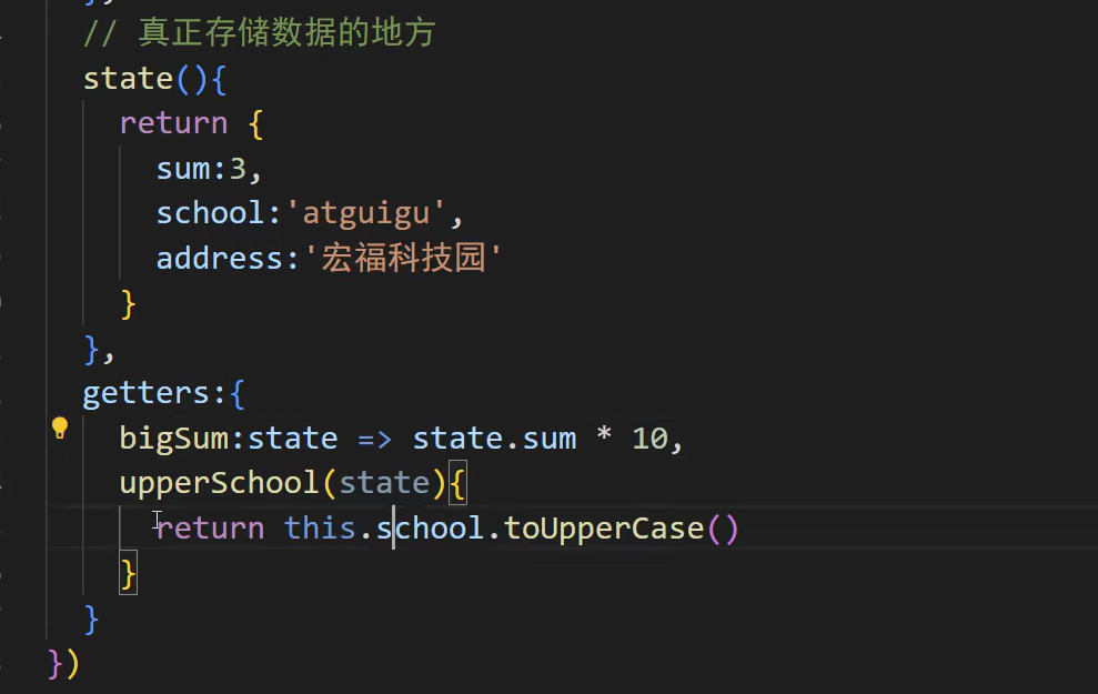 export const useCounterStore = defineStore('counter', {state: () => ({ count: 0 }),getters: {// 1. 常规函数写法,通过 `this` 访问 statedoubleCount: (state) => state.count * 2,// 2. 使用 `this` 访问其他 getters (必须用常规函数而非箭头函数)doubleCountPlusOne() {return this.doubleCount + 1}}