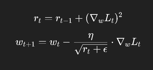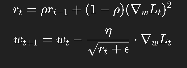 它保留了 AdaGrad 的思想,但不再无限累加梯度平方,而是用指数滑动平均: