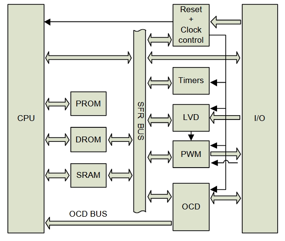 CPU | 8-bit RISC,37 指令 | 2T/4T 可选,16 MHz @ ≥2.5 V |