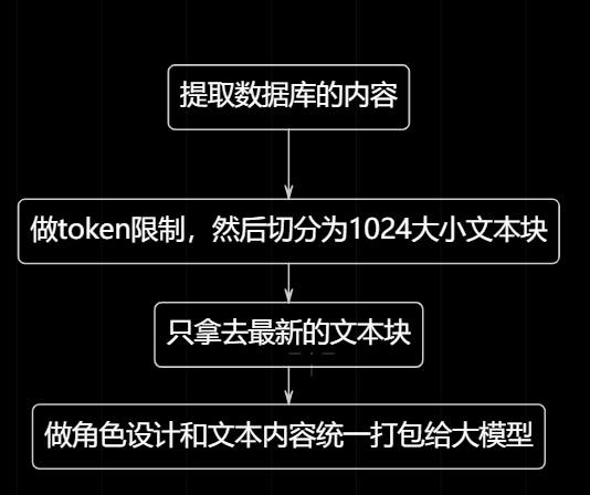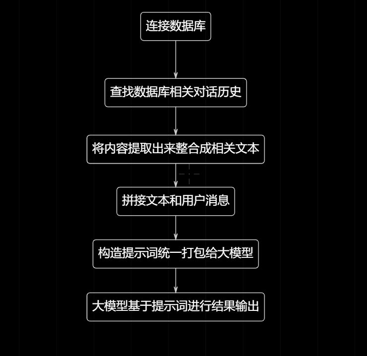 这个流程存在一个重要的点,就是当历史对话存在大量内容的时候会导致数据爆炸,然后再统一打包给大模型这是不可能的点。因为一个你的电脑性能不允许,然后数据量token值过高,费用承担不起,还有一个点就是响应速度慢。