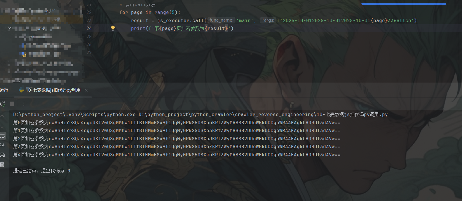 class JSExecutor:def __init__(self, js_file_path):if not os.path.exists(js_file_path):print('js文件不存在或者路径出错')with open(js_file_path, 'r', encoding='utf-8') as f:self.js_code = f.read()self.js_code = execjs.compile(self.js_code)def call(self, func_name, *args):return self.js_code.call(func_name, *args)if __name__ == '__main__':# 实例化对象(直接运行__init__函数,等于说js代码也编译完了)js_executor = JSExecutor('10-七麦数据js扣代码.js')# 调用call方法for page in range(5):result = js_executor.call('main', f'2025-10-012025-10-012025-10-01{page}336allcn')print(f'第{page}页加密参数为{result}')basic_crawler(result, page)