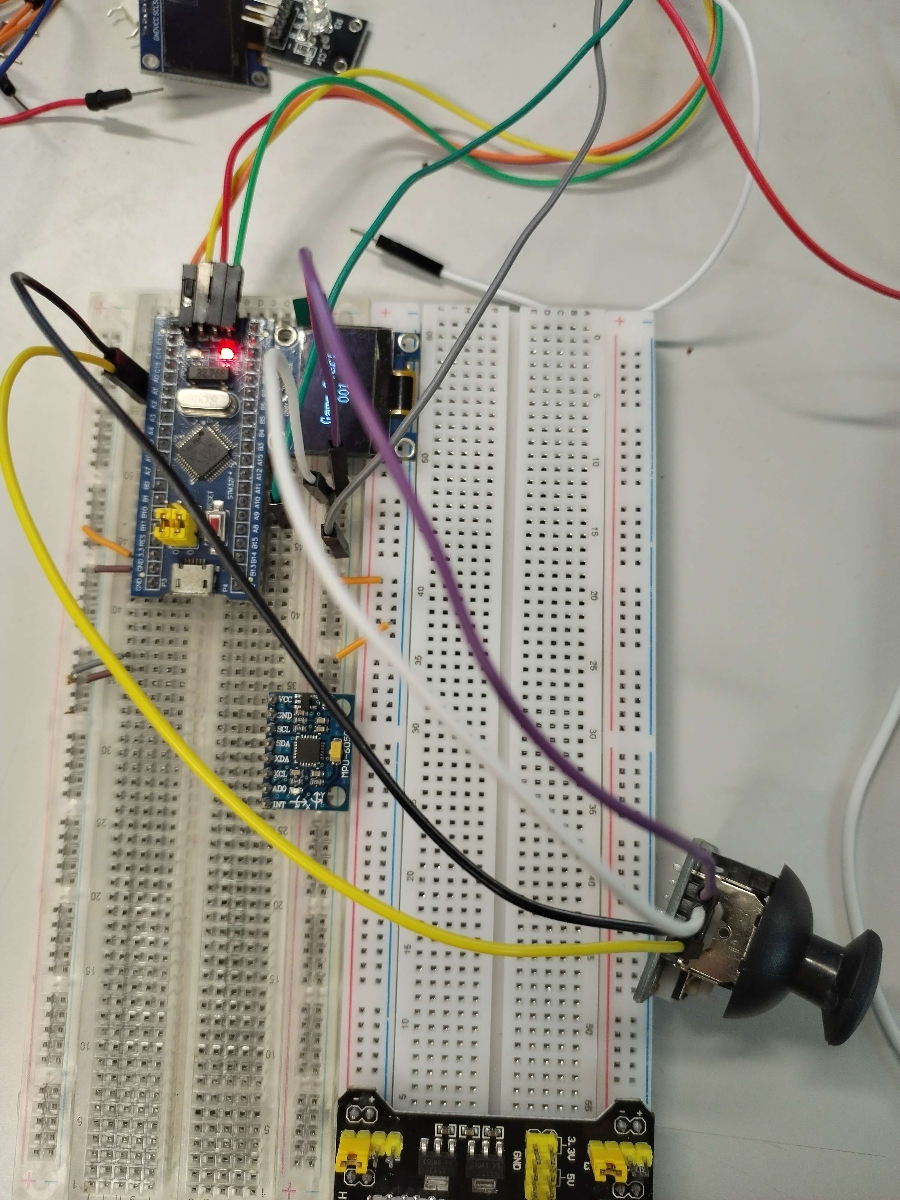 - Y轴运动:上下推动时,Y轴电位器电阻变化。