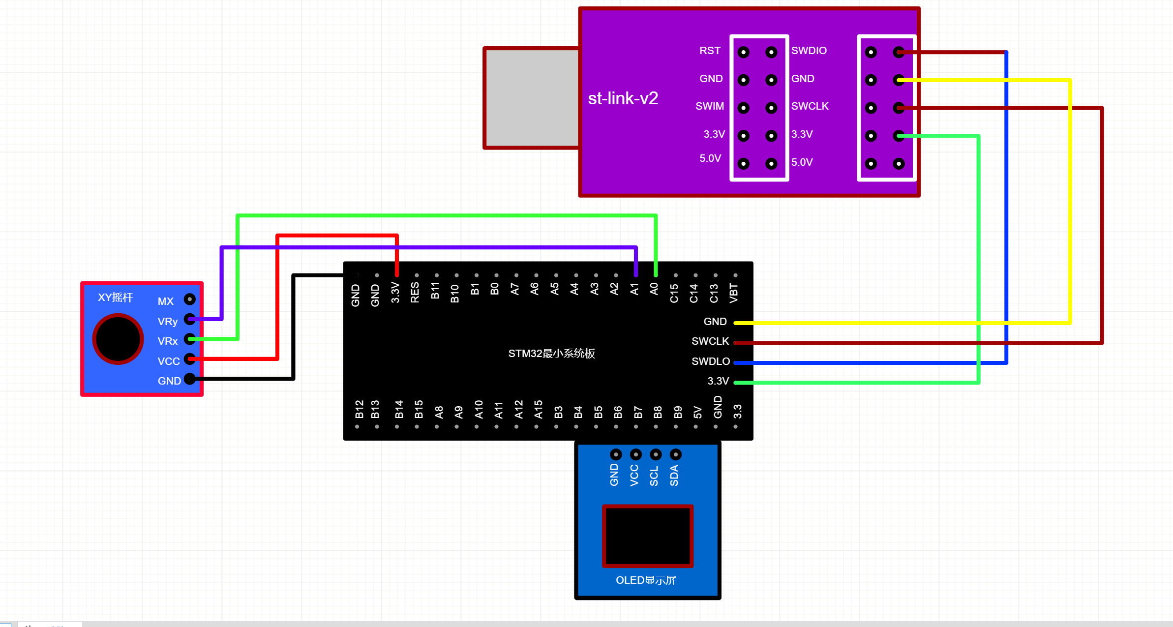 将XY摇杆模块与STM32控制板连接如下: