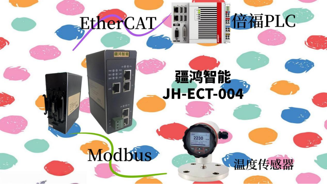 为解决上述问题,我们设计了一套基于 EtherCAT 工业以太网与 Modbus RS485 协议相结合的分布式温度监控方案。其核心思路是:在每台轧辊轴承座上就近安装支持 Modbus RS485 协议的智能数字温度传感器,负责采集精确的温度数据;随后,通过部署在设备附近的 EtherCAT 转 RS485 网关,将多个传感器串联起来,并将 Modbus 协议数据高效、无损地转换并接入到主流的 EtherCAT 主干网络中。最终,实时温度数据被上传至控制系统(如PLC),实现集中监控与智能预警。