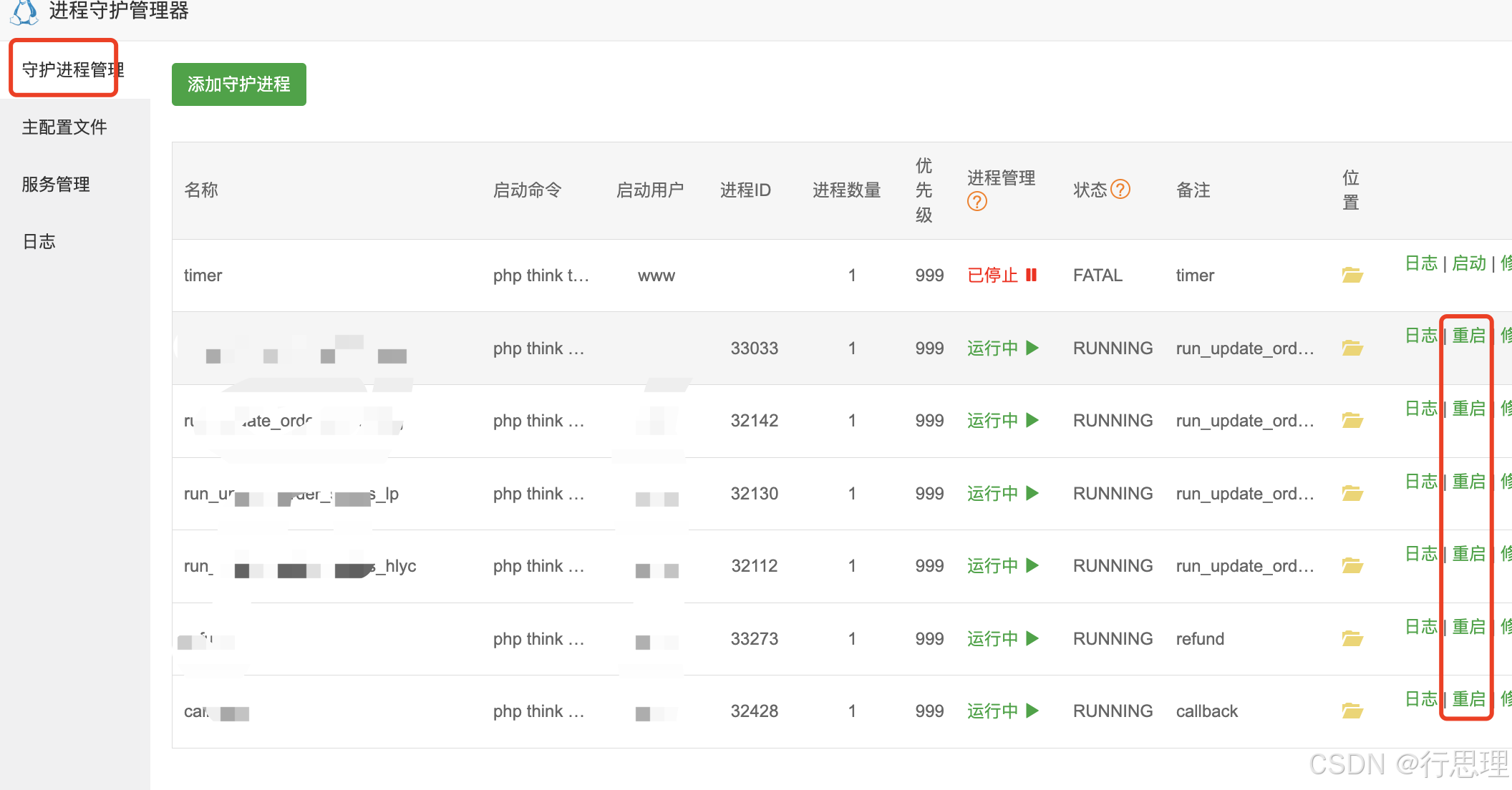 这是进程错乱了,在通过supervisor重启时,又新打开了新的进程,supervisor通过如下图的方式重启,不会关闭原来的进程。