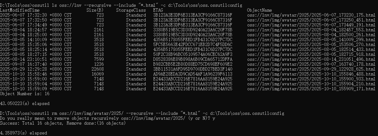 ossutil rm oss://lnv/img/avatar/2025/ --recursive --include "*.html" -c d:\Tools\oss\oss.ossutilconfig