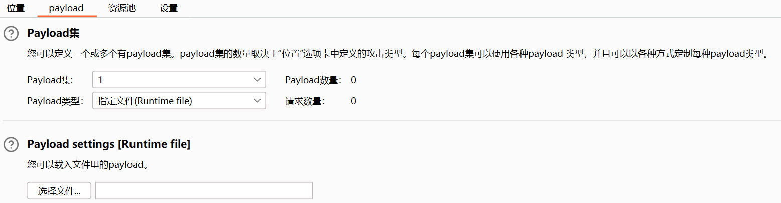 在payload类型选择指定文件(也就是字典,弱口令字典百度上有不做推荐)