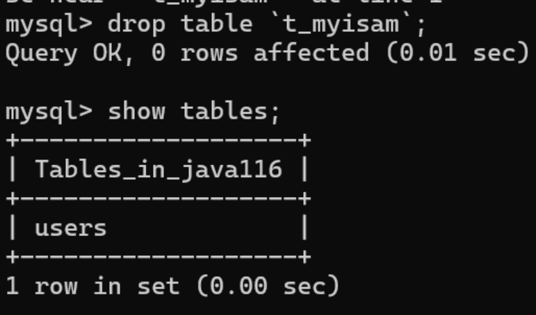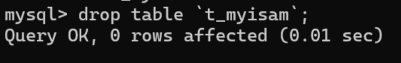 create table if not EXISTS t_myisam(id bigint ,`name` varchar(30) )engine = myISAM;