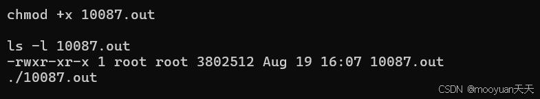 的文件添加可执行权限。在 Linux 中,一个文件刚被编译出来时,默认可能没有执行权限,必须使用 chmod +x